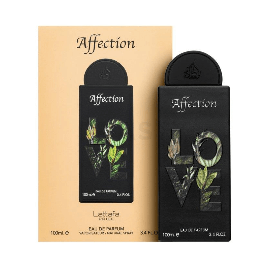 Affection by Lattafa Perfumes is een onlangs gelanceerde bloemige geur ontworpen voor dames en heren, gelanceerd in 2024. Het opent met topnoten van pistache, hazelnoot en zwarte bes, gevolgd door hartnoten van lacton, framboos, jasmijn en lelietje-van-dalen. De geur wordt afgerond met basisnoten van lacton, vanille en tonkaboon.