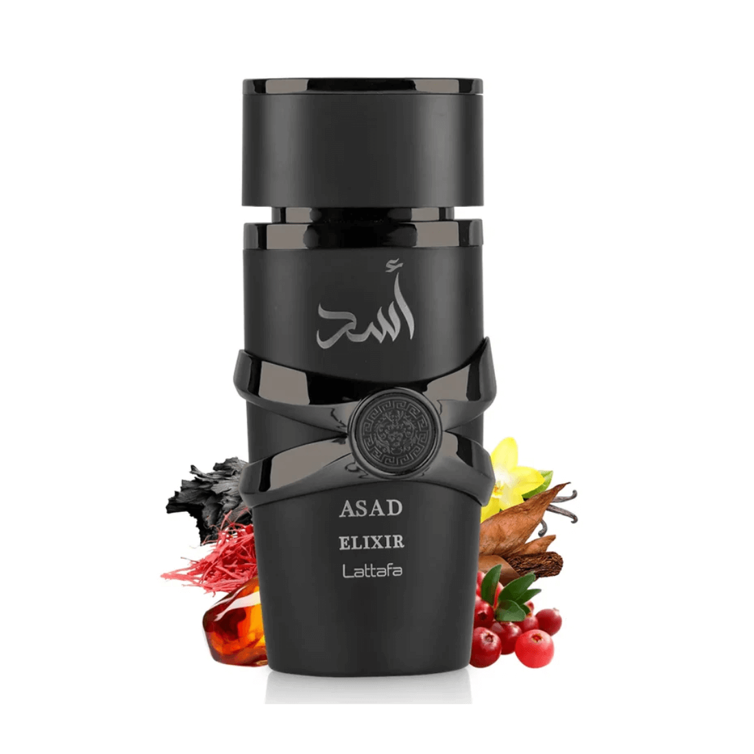 Asad Elixir is een intensere, donkerdere evolutie van het origineel, met een krachtige oosterse uitstraling. De topnoten van roze peper, saffraan en grapefruit openen met een kruidige en zelfverzekerde explosie. In het hart vermengen tabak, cederhout en vanille zich tot een warme, mannelijke diepte. De basis van patchouli, wierook, cashmeran en droge amber zorgt voor een kenmerkende, langdurige signatuur. Een intense geur met kracht, diepte en karakter, ideaal voor liefhebbers van krachtige, elegante parfums.