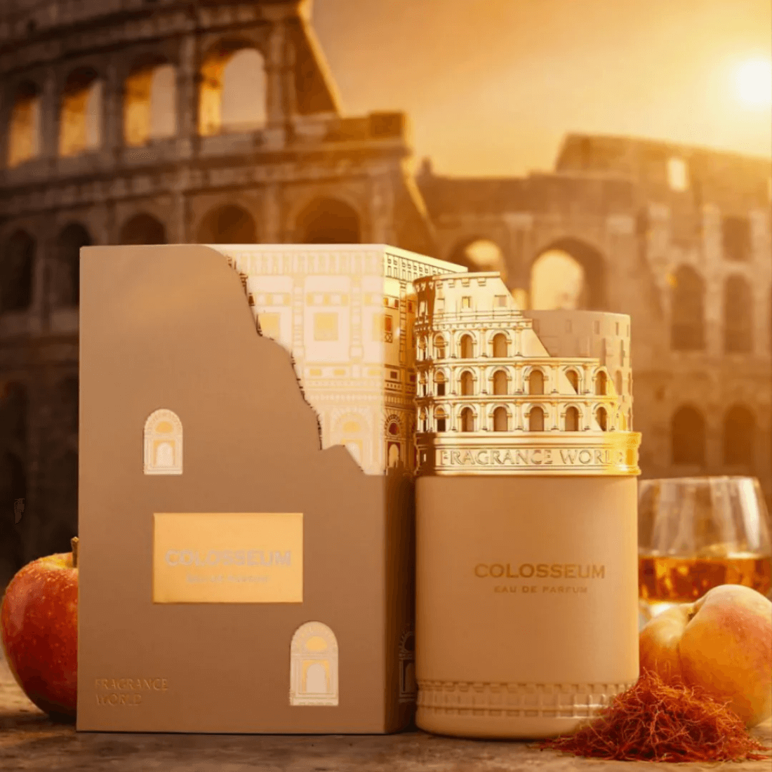 Colosseum van Fragrance World is een nieuwe oriëntaalse, houtachtige unisexgeur uit 2025. De geur opent met rum, saffraan, perzik en appel, gaat over in patchouli, vetiver en jasmijn, en eindigt met amber, sandelhout, vanille en tonkaboon.