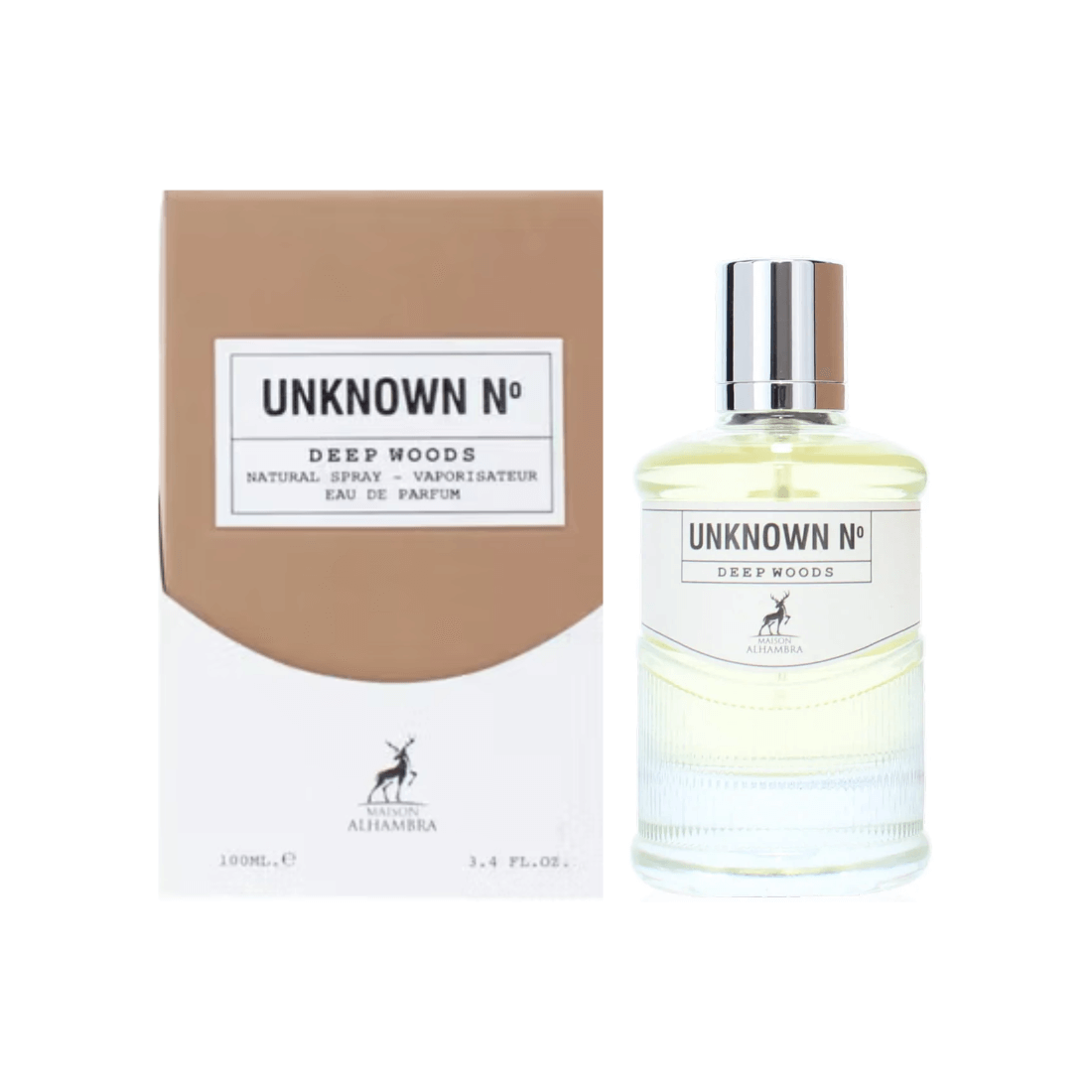 Unknown Deep Woods von Maison Alhambra ist ein geheimnisvoller holziger Duft mit tiefer, moderner Ausstrahlung. Warme Holznoten und aromatische Nuancen verschmelzen zu einer eleganten Komposition, die Stärke, Ruhe und Selbstbewusstsein vermittelt. Der Duft wirkt maskulin und gleichzeitig vielseitig und eignet sich ideal für Liebhaber von tiefen, holzigen Parfums mit charakterstarker Präsenz. Ein stilvoller Duft für Alltag und Abendmomente mit raffinierter Tiefe.