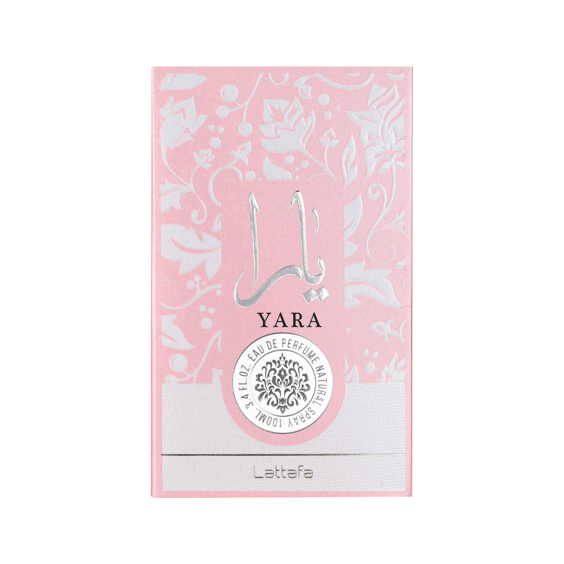 Yara van Lattafa Perfumes is een amber-vanillegeur ontworpen voor vrouwen en gelanceerd in 2020. Het opent met topnoten van orchidee, heliotroop en mandarijn, gevolgd door hartnoten van een gastronomisch akkoord en tropisch fruit. De geur eindigt met basisnoten van vanille, muskus en sandelhout.